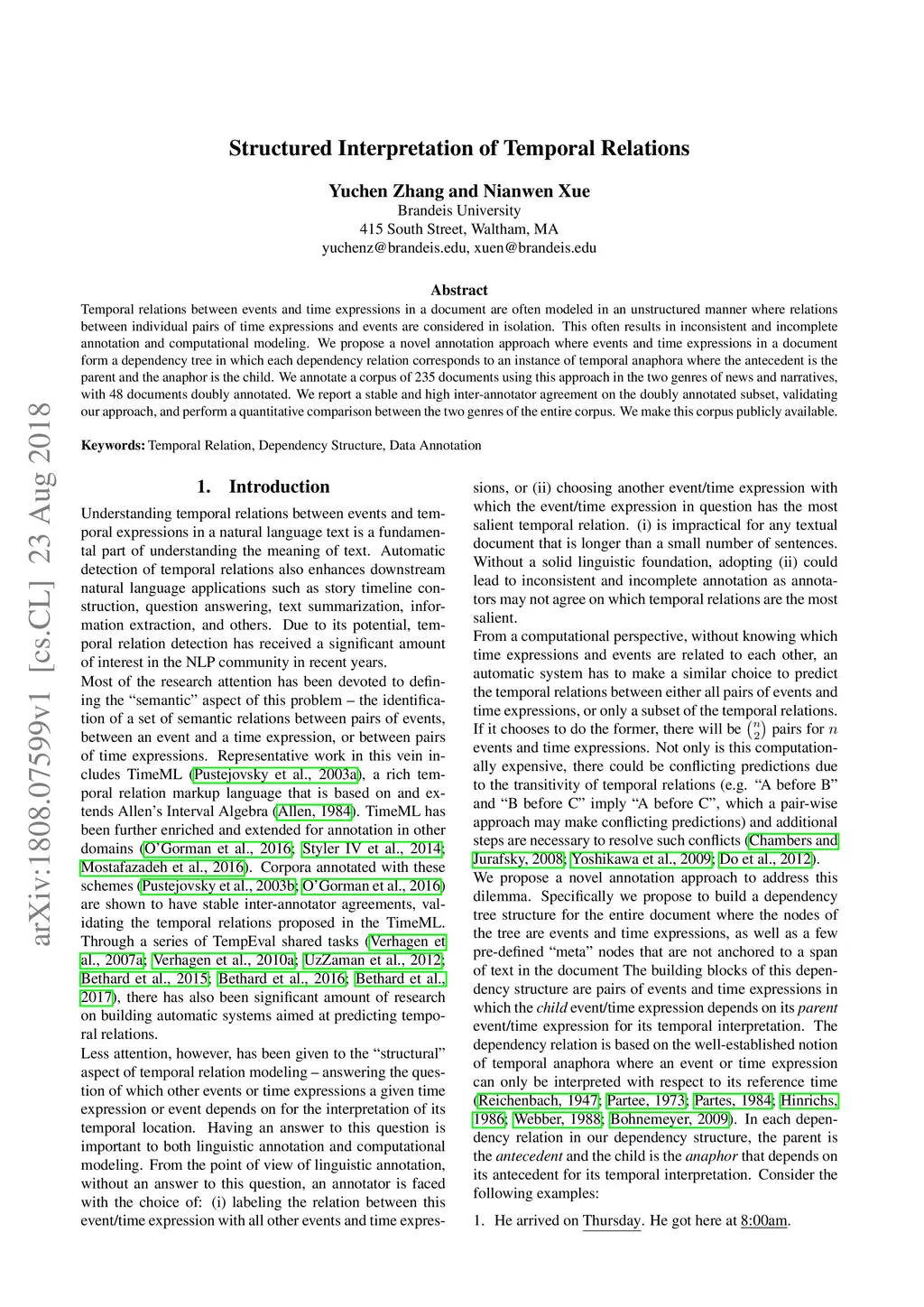 Structured Interpretation of Temporal Relations