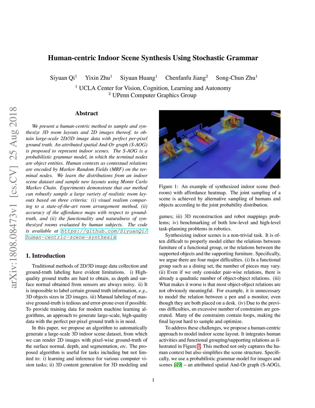 Human-centric Indoor Scene Synthesis Using Stochastic Grammar