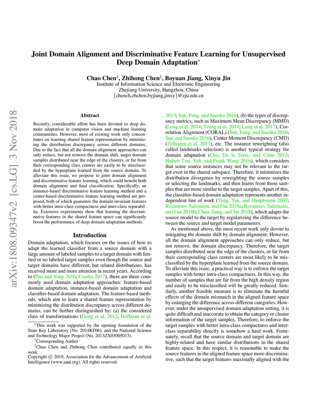 Joint Domain Alignment and Discriminative Feature Learning for