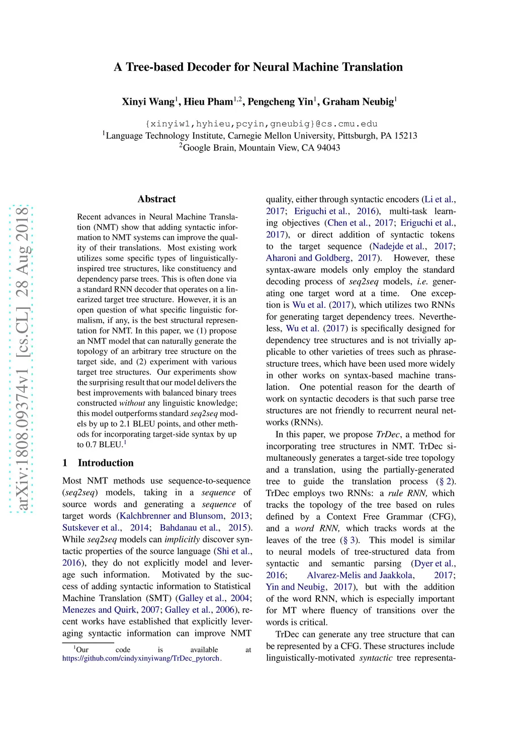 Recent advances in Neural Machine Translation (NMT) show that adding syntactic information to NMT systems can improve the quality of their translations. Most existing work utilizes some specific types of linguistically-inspired tree structures, like constituency and dependency parse trees. This is often done via a standard RNN decoder that operates on a linearized target tree structure. However, it is an open question of what specific linguistic formalism, if any, is the best structural representation for NMT. In this paper, we (1) propose an NMT model that can naturally generate the topology of an arbitrary tree structure on the target side, and (2) experiment with various target tree structures. Our experiments show the surprising result that our model delivers the best improvements with balanced binary trees constructed without any linguistic knowledge; this model outperforms standard seq2seq models by up to 2.1 BLEU points, and other methods for incorporating target-side syntax by up to 0.7 BLEU.
