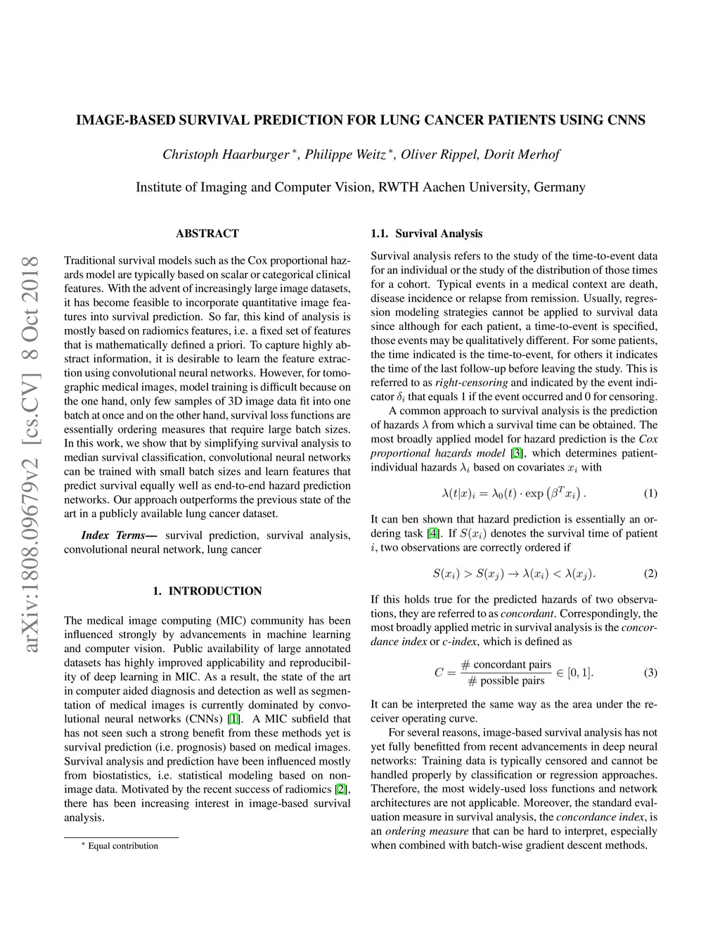 Image-based Survival Analysis for Lung Cancer Patients using CNNs