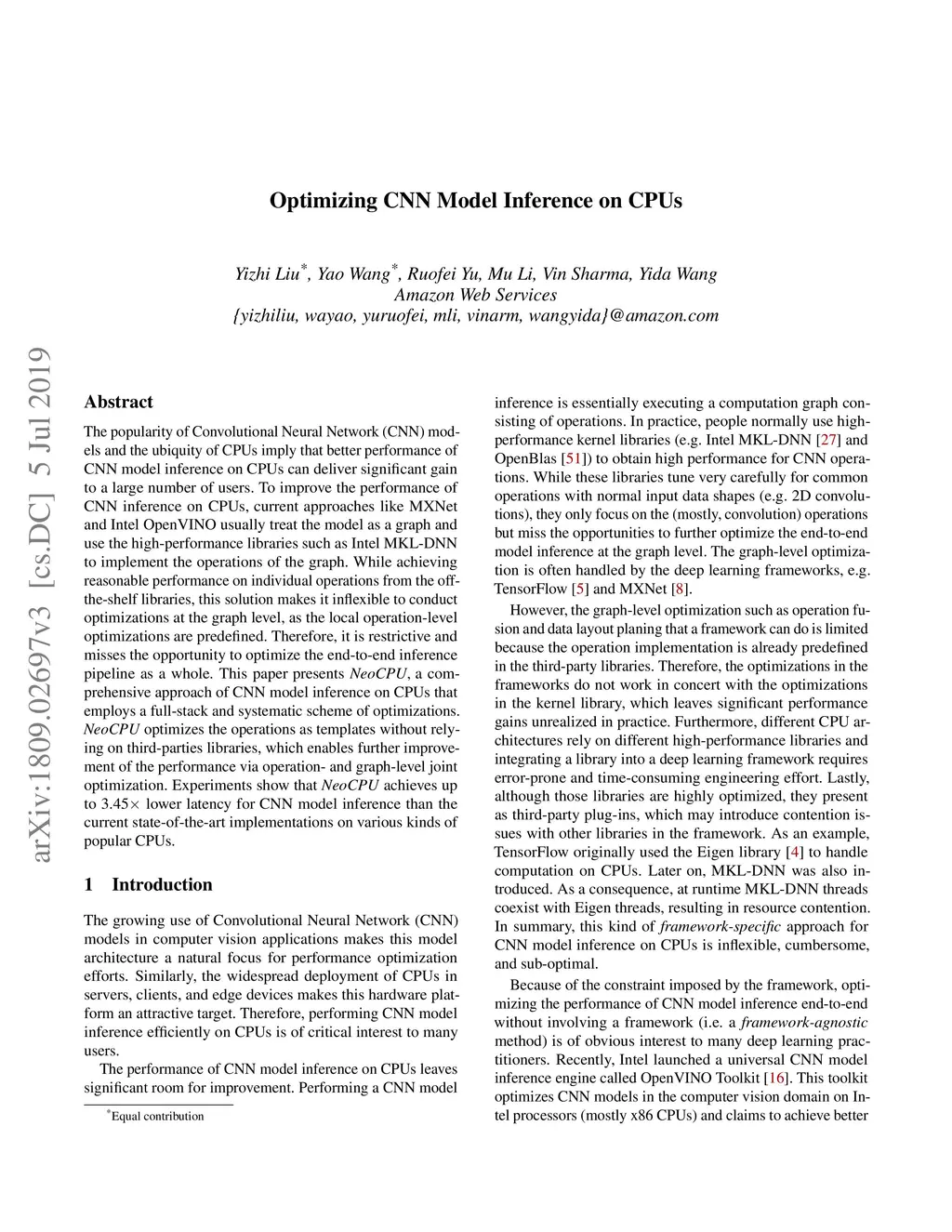 Optimizing CNN Model Inference on CPUs