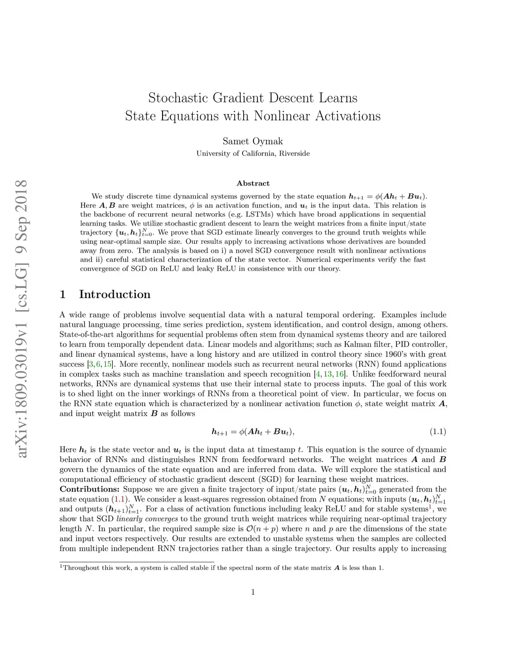 Stochastic Gradient Descent Learns State Equations with Nonlinear