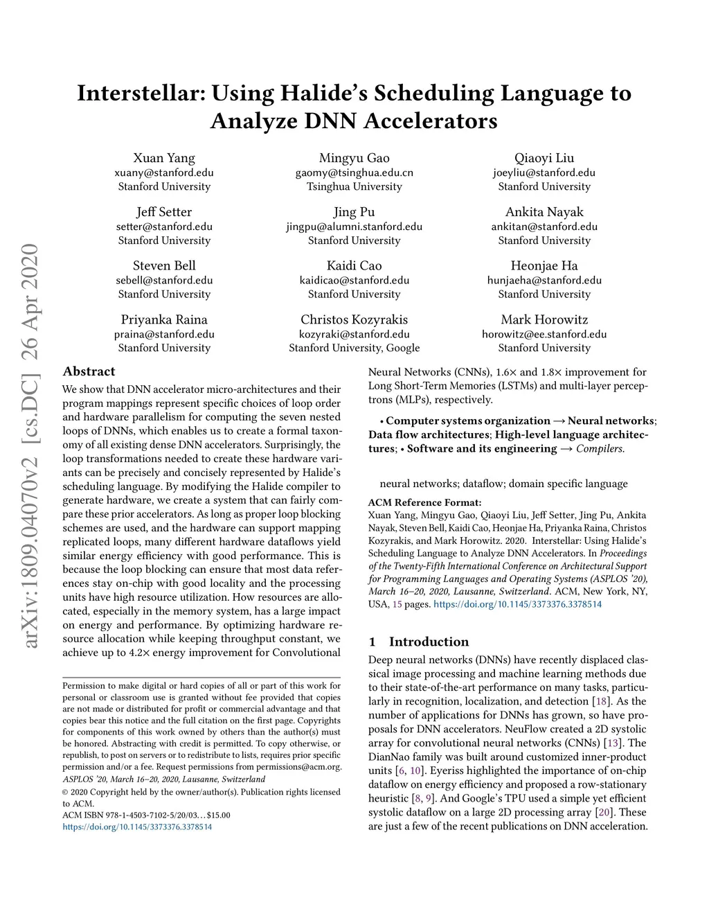 Interstellar: Using Halide's Scheduling Language to Analyze DNN