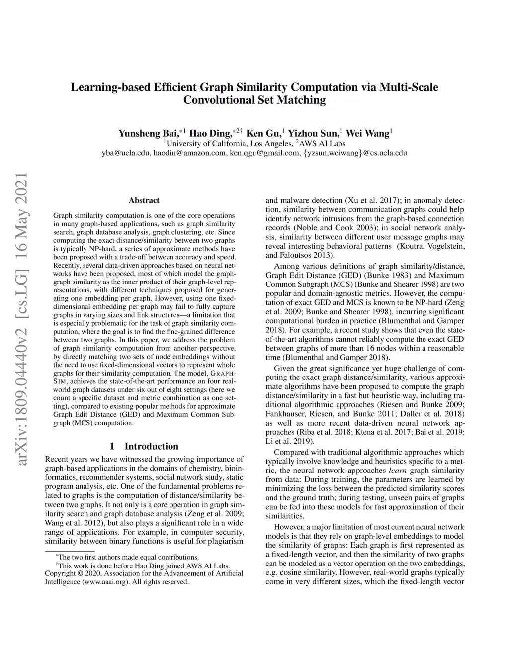 Learning-based Efficient Graph Similarity Computation via Multi-Scale