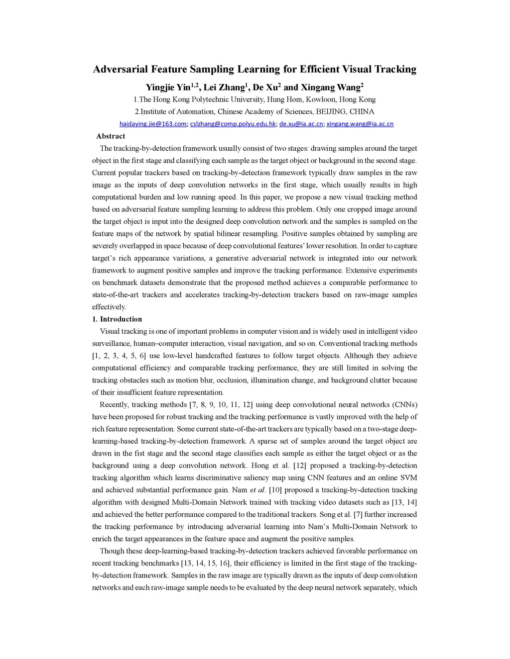Adversarial Feature Sampling Learning for Efficient Visual Tracking