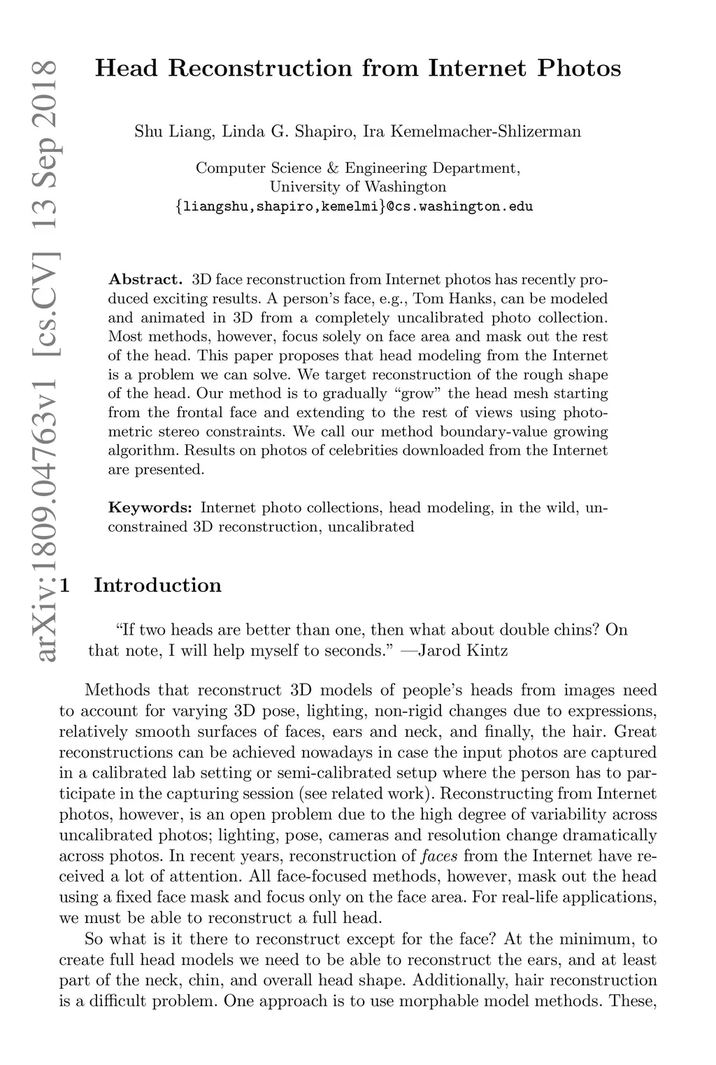 3D face reconstruction from Internet photos has recently produced exciting results. A person's face, e.g., Tom Hanks, can be modeled and animated in 3D from a completely uncalibrated photo collection. Most methods, however, focus solely on face area and mask out the rest of the head. This paper proposes that head modeling from the Internet is a problem we can solve. We target reconstruction of the rough shape of the head. Our method is to gradually "grow" the head mesh starting from the frontal face and extending to the rest of views using photometric stereo constraints. We call our method boundary-value growing algorithm. Results on photos of celebrities downloaded from the Internet are presented.