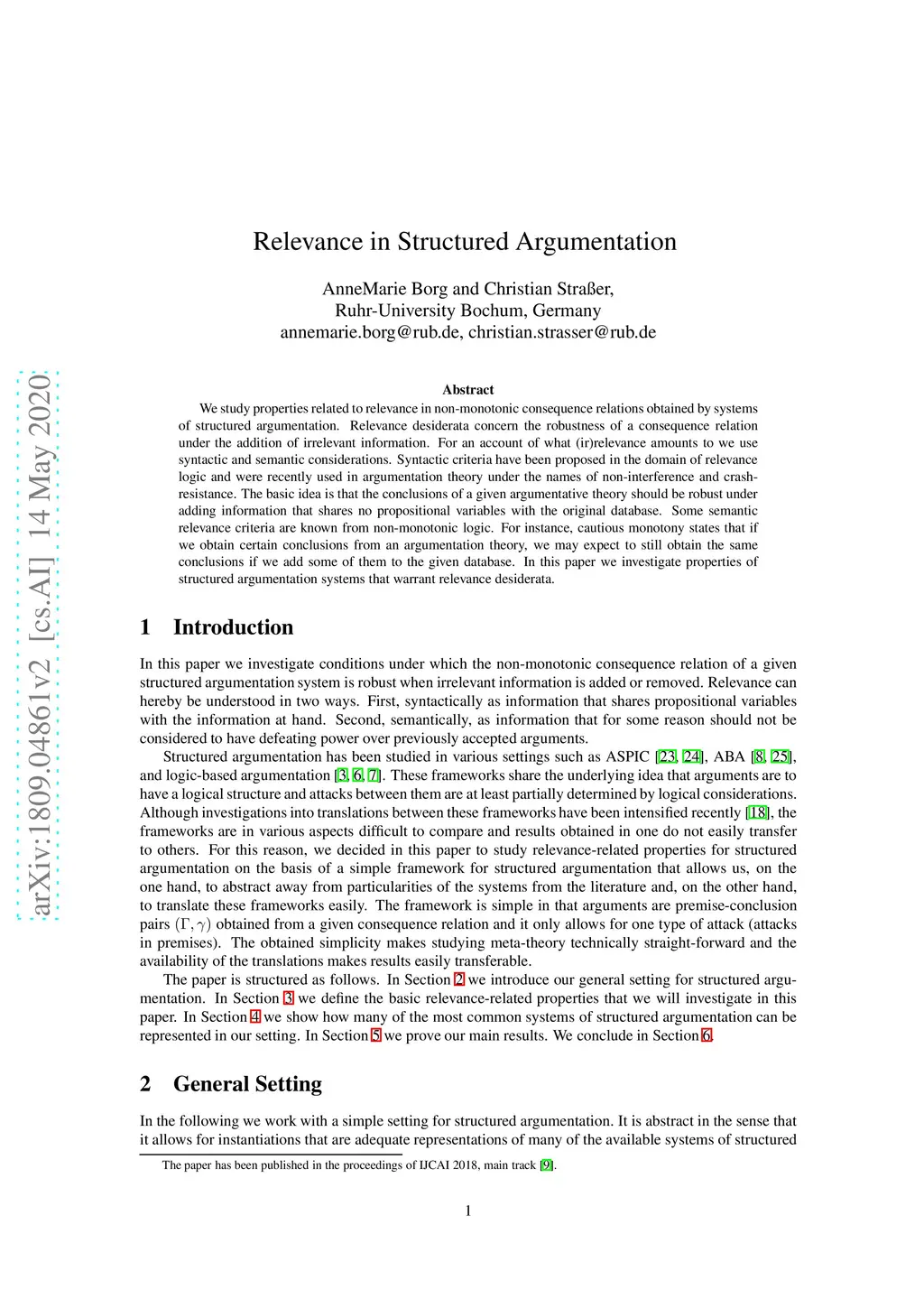 We study properties related to relevance in non-monotonic consequence relations obtained by systems of structured argumentation. Relevance desiderata concern the robustness of a consequence relation under the addition of irrelevant information. For an account of what (ir)relevance amounts to we use syntactic and semantic considerations. Syntactic criteria have been proposed in the domain of relevance logic and were recently used in argumentation theory under the names of non-interference and crash-resistance. The basic idea is that the conclusions of a given argumentative theory should be robust under adding information that shares no propositional variables with the original database. Some semantic relevance criteria are known from non-monotonic logic. For instance, cautious monotony states that if we obtain certain conclusions from an argumentation theory, we may expect to still obtain the same conclusions if we add some of them to the given database. In this paper we investigate properties of structured argumentation systems that warrant relevance desiderata.