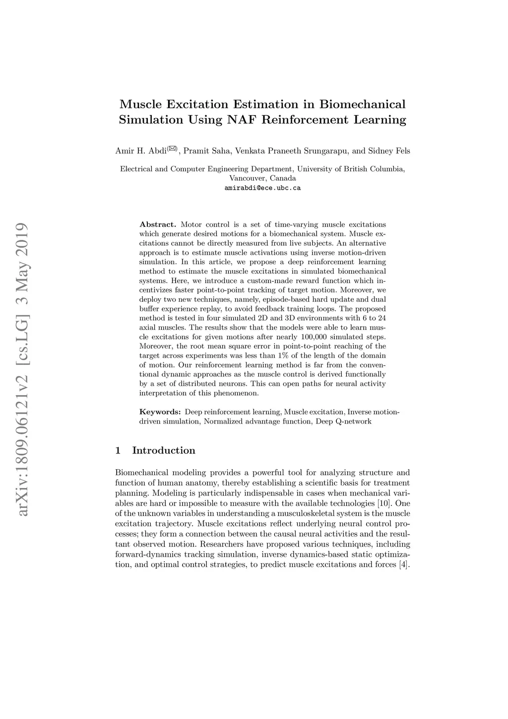 Muscle Excitation Estimation in Biomechanical Simulation Using NAF