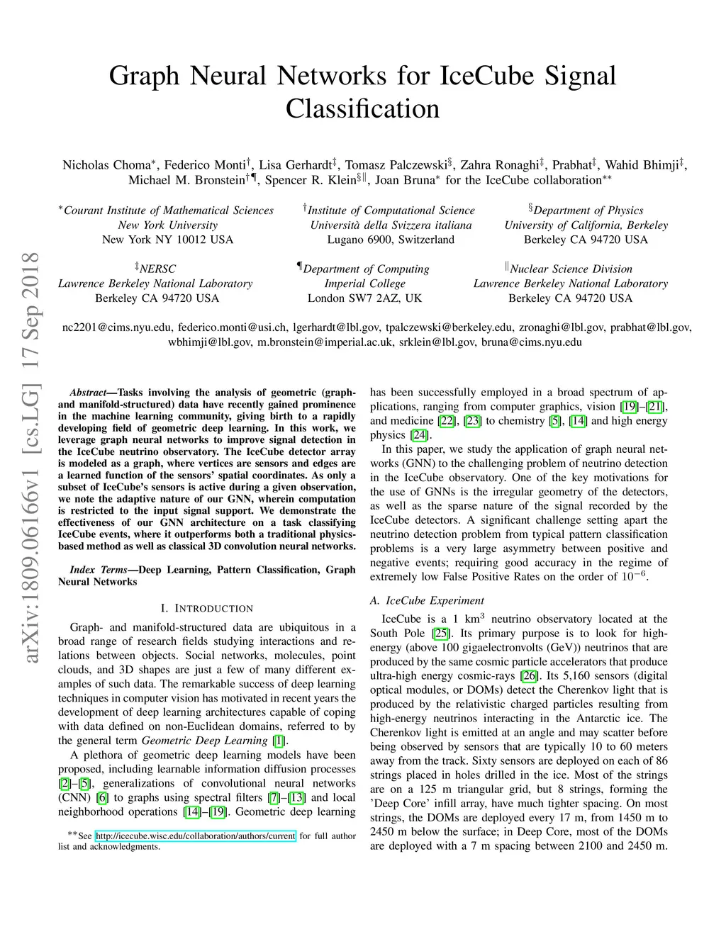 Tasks involving the analysis of geometric (graph- and manifold-structured) data have recently gained prominence in the machine learning community, giving birth to a rapidly developing field of geometric deep learning. In this work, we leverage graph neural networks to improve signal detection in the IceCube neutrino observatory. The IceCube detector array is modeled as a graph, where vertices are sensors and edges are a learned function of the sensors' spatial coordinates. As only a subset of IceCube's sensors is active during a given observation, we note the adaptive nature of our GNN, wherein computation is restricted to the input signal support. We demonstrate the effectiveness of our GNN architecture on a task classifying IceCube events, where it outperforms both a traditional physics-based method as well as classical 3D convolution neural networks.
