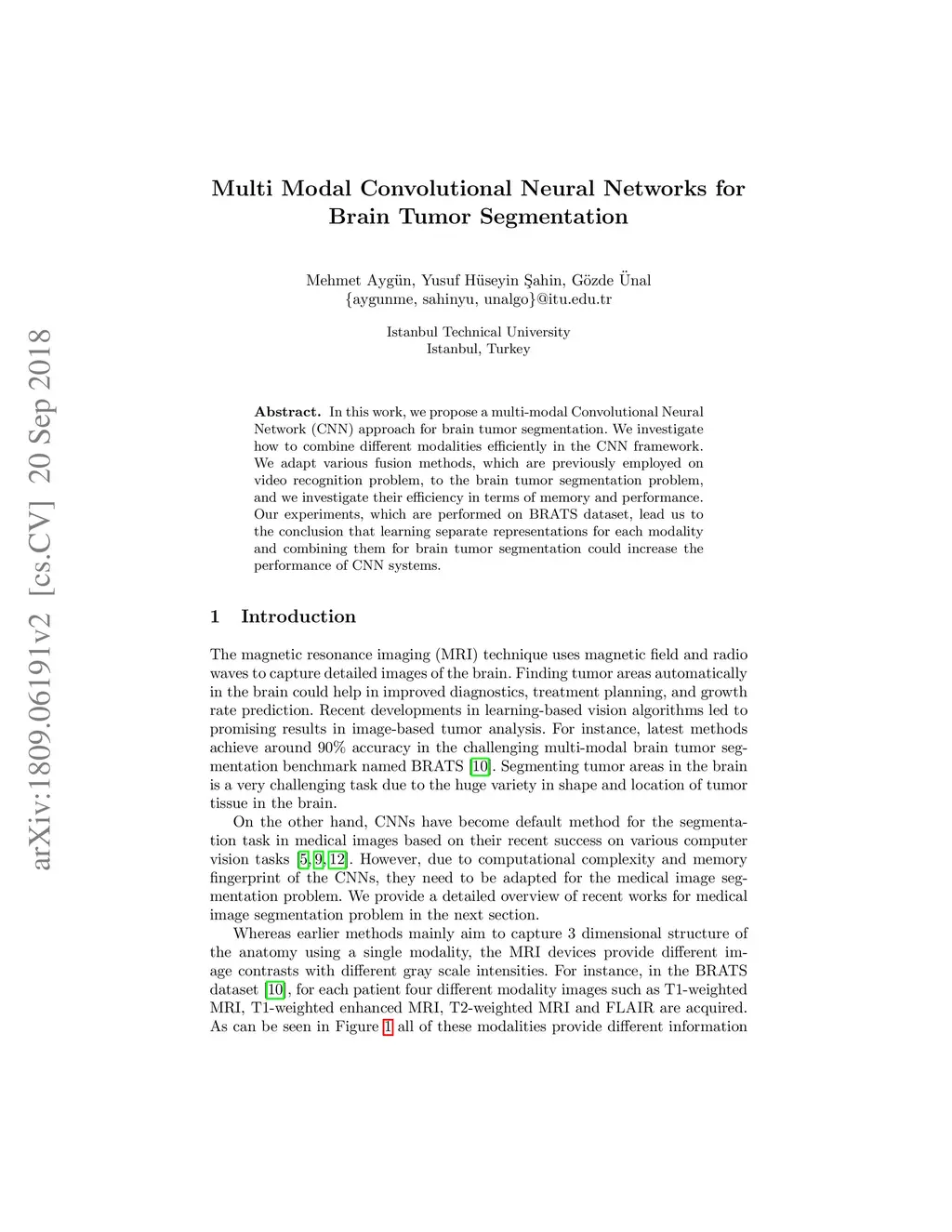 Multi Modal Convolutional Neural Networks for Brain Tumor Segmentation