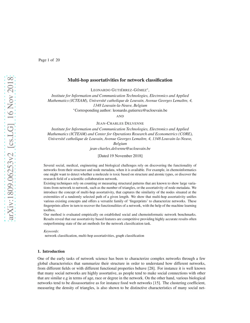 Multi-hop assortativities for networks classification