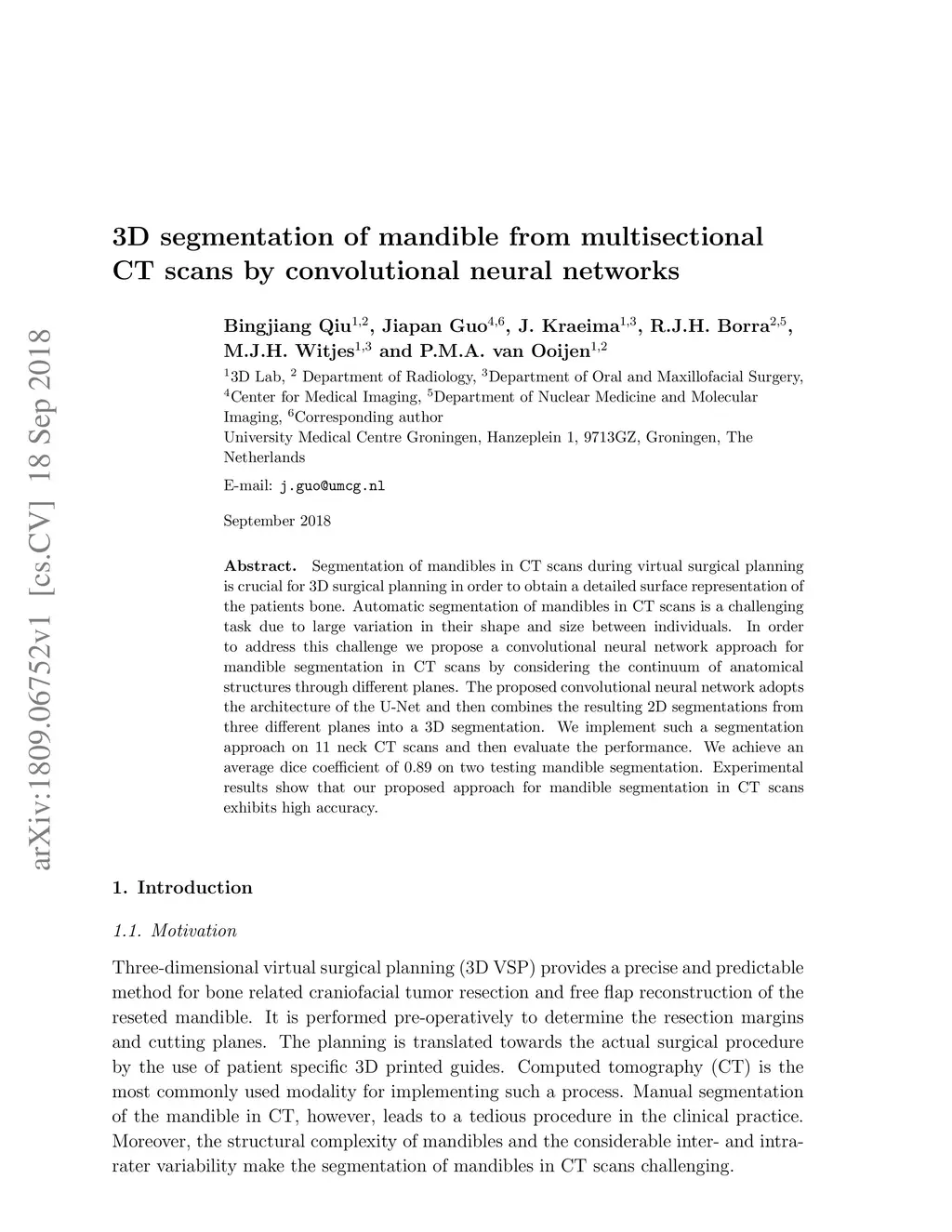 3D segmentation of mandible from multisectional CT scans by