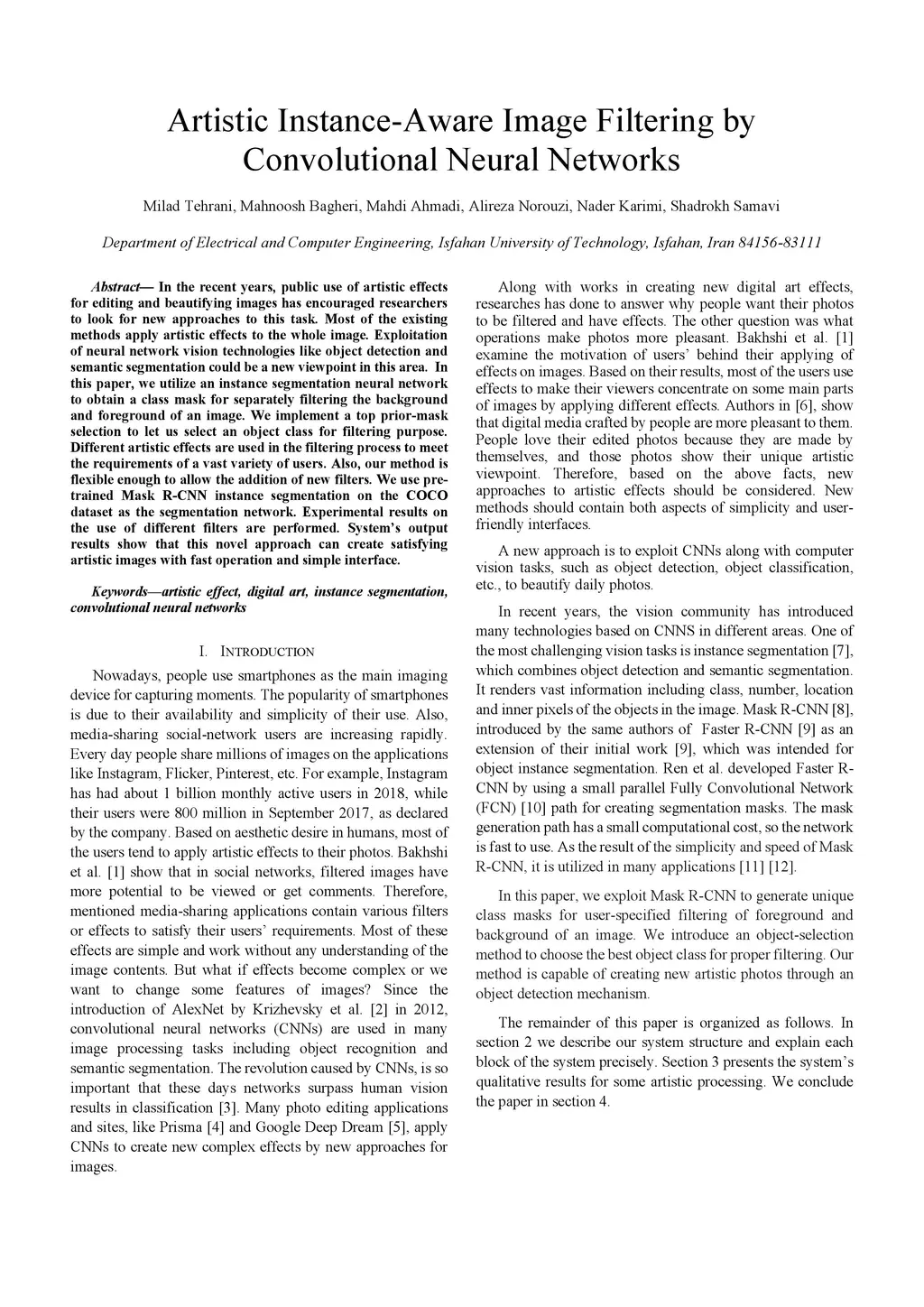 Artistic Instance-Aware Image Filtering by Convolutional Neural Networks