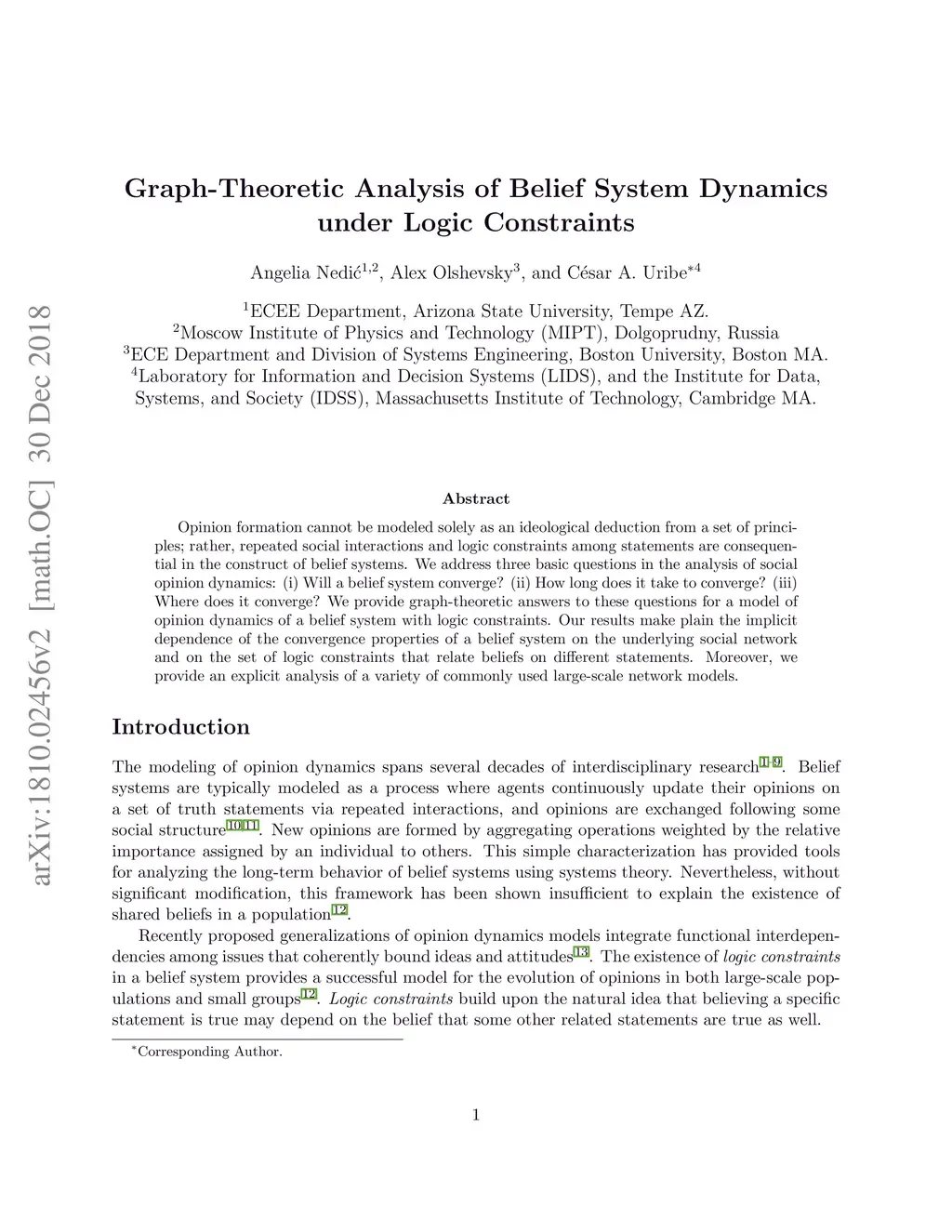 Graph-Theoretic Analysis of Belief System Dynamics under Logic