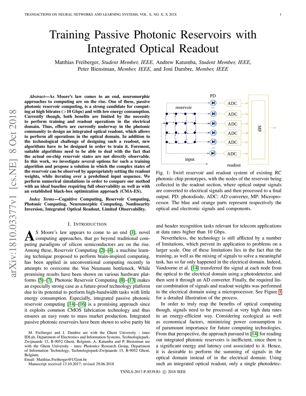 As Moore's law comes to an end, neuromorphic approaches to computing are on the rise. One of these, passive photonic reservoir computing, is a strong candidate for computing at high bitrates (> 10 Gbps) and with low energy consumption. Currently though, both benefits are limited by the necessity to perform training and readout operations in the electrical domain. Thus, efforts are currently underway in the photonic community to design an integrated optical readout, which allows to perform all operations in the optical domain. In addition to the technological challenge of designing such a readout, new algorithms have to be designed in order to train it. Foremost, suitable algorithms need to be able to deal with the fact that the actual on-chip reservoir states are not directly observable. In this work, we investigate several options for such a training algorithm and propose a solution in which the complex states of the reservoir can be observed by appropriately setting the readout weights, while iterating over a predefined input sequence. We perform numerical simulations in order to compare our method with an ideal baseline requiring full observability as well as with an established black-box optimization approach (CMA-ES).