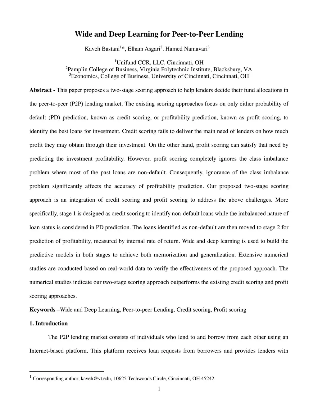 This paper proposes a two-stage scoring approach to help lenders decide their fund allocations in the peer-to-peer (P2P) lending market. The existing scoring approaches focus on only either probability of default (PD) prediction, known as credit scoring, or profitability prediction, known as profit scoring, to identify the best loans for investment. Credit scoring fails to deliver the main need of lenders on how much profit they may obtain through their investment. On the other hand, profit scoring can satisfy that need by predicting the investment profitability. However, profit scoring completely ignores the class imbalance problem where most of the past loans are non-default. Consequently, ignorance of the class imbalance problem significantly affects the accuracy of profitability prediction. Our proposed two-stage scoring approach is an integration of credit scoring and profit scoring to address the above challenges. More specifically, stage 1 is designed as credit scoring to identify non-default loans while the imbalanced nature of loan status is considered in PD prediction. The loans identified as non-default are then moved to stage 2 for prediction of profitability, measured by internal rate of return. Wide and deep learning is used to build the predictive models in both stages to achieve both memorization and generalization. Extensive numerical studies are conducted based on real-world data to verify the effectiveness of the proposed approach. The numerical studies indicate our two-stage scoring approach outperforms the existing credit scoring and profit scoring approaches.