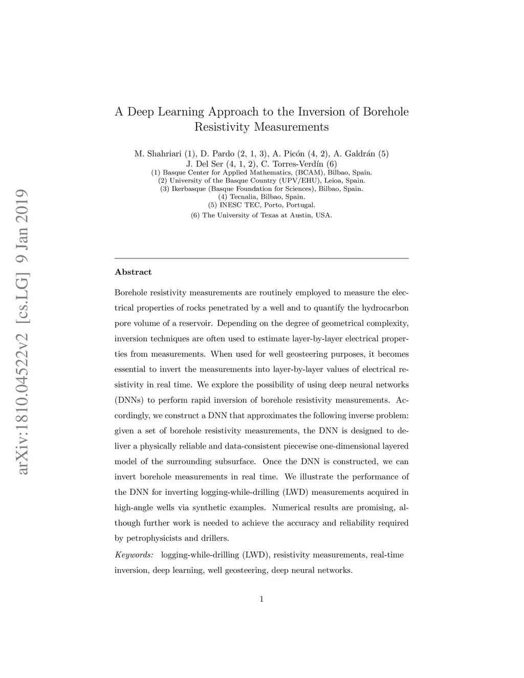 A Deep Learning Approach to the Inversion of Borehole Resistivity