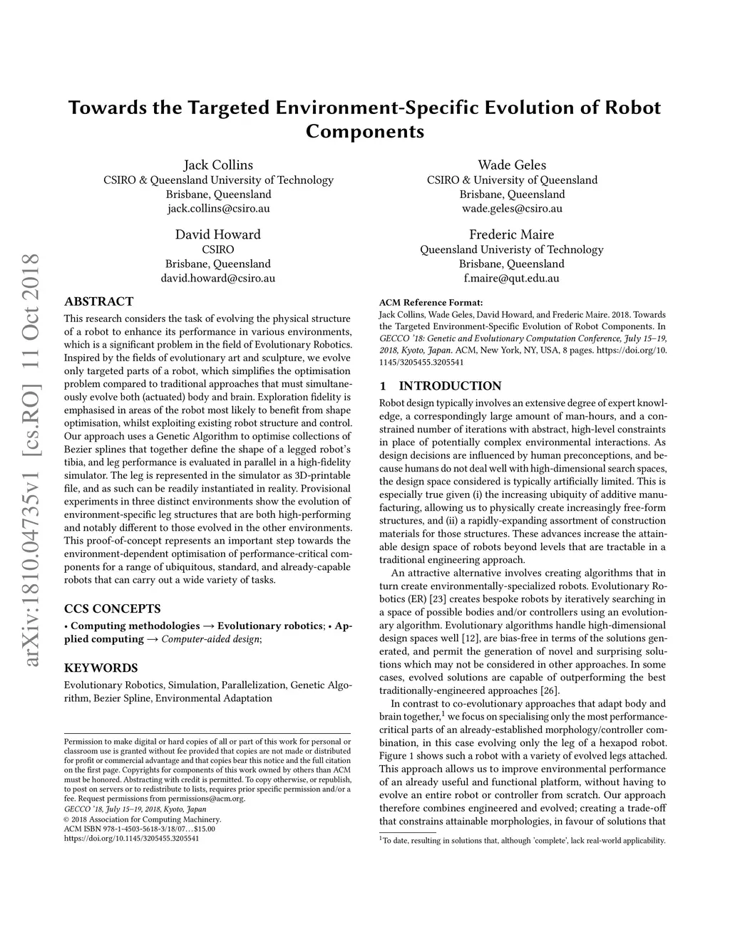 Towards the Targeted Environment-Specific Evolution of Robot Components