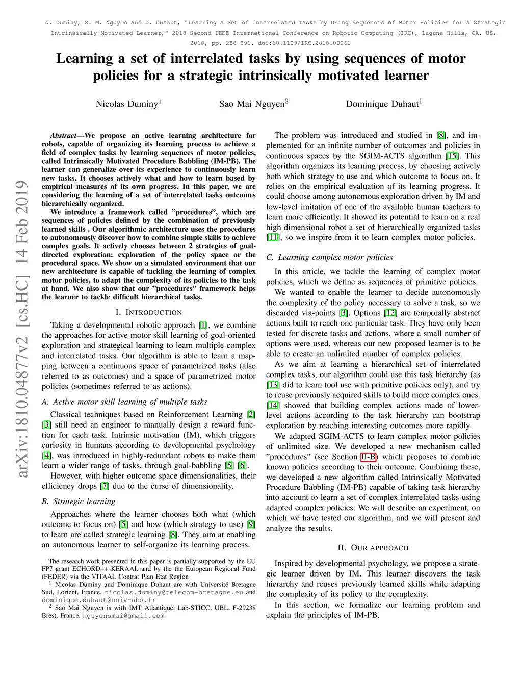 Learning a Set of Interrelated Tasks by Using Sequences of Motor