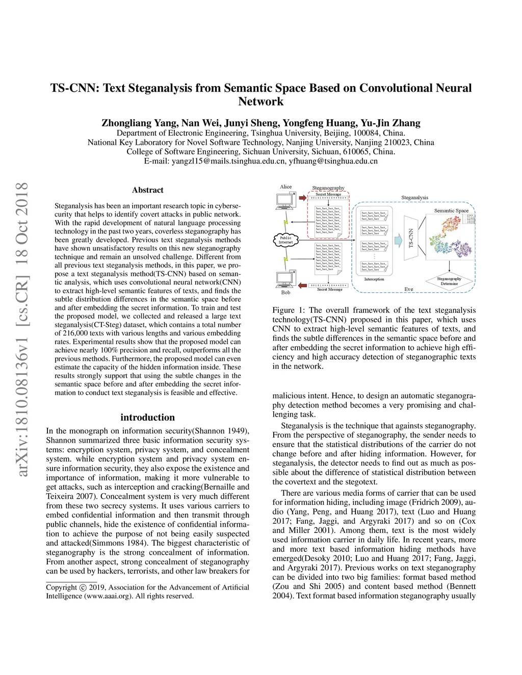 TS-CNN: Text Steganalysis from Semantic Space Based on Convolutional