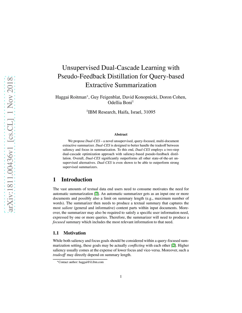 We propose Dual-CES -- a novel unsupervised, query-focused, multi-document extractive summarizer. Dual-CES is designed to better handle the tradeoff between saliency and focus in summarization. To this end, Dual-CES employs a two-step dual-cascade optimization approach with saliency-based pseudo-feedback distillation. Overall, Dual-CES significantly outperforms all other state-of-the-art unsupervised alternatives. Dual-CES is even shown to be able to outperform strong supervised summarizers.
