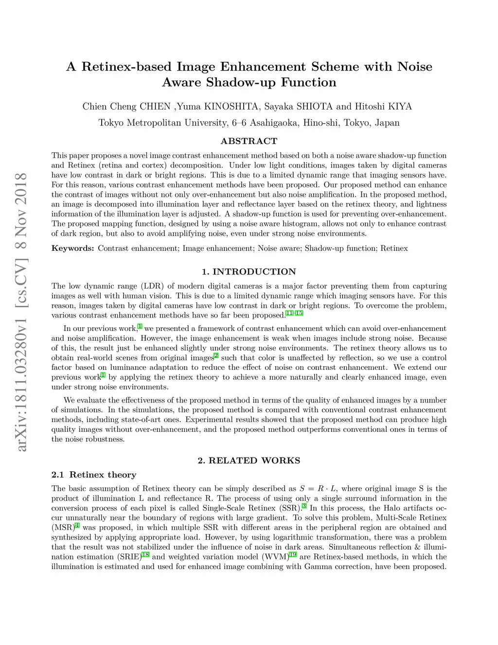 A Retinex-based Image Enhancement Scheme with Noise Aware Shadow-up