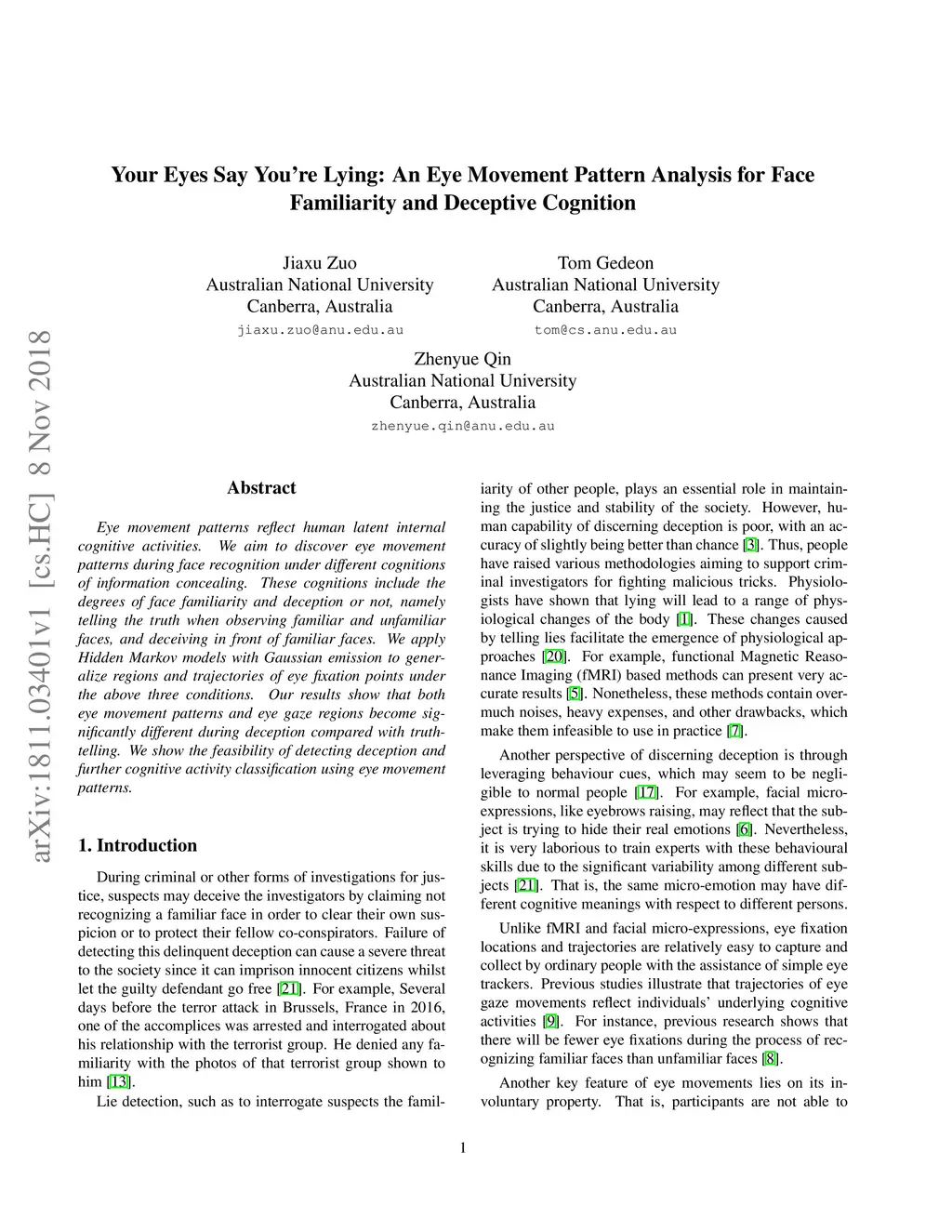 Your Eyes Say You're Lying: An Eye Movement Pattern Analysis for Face