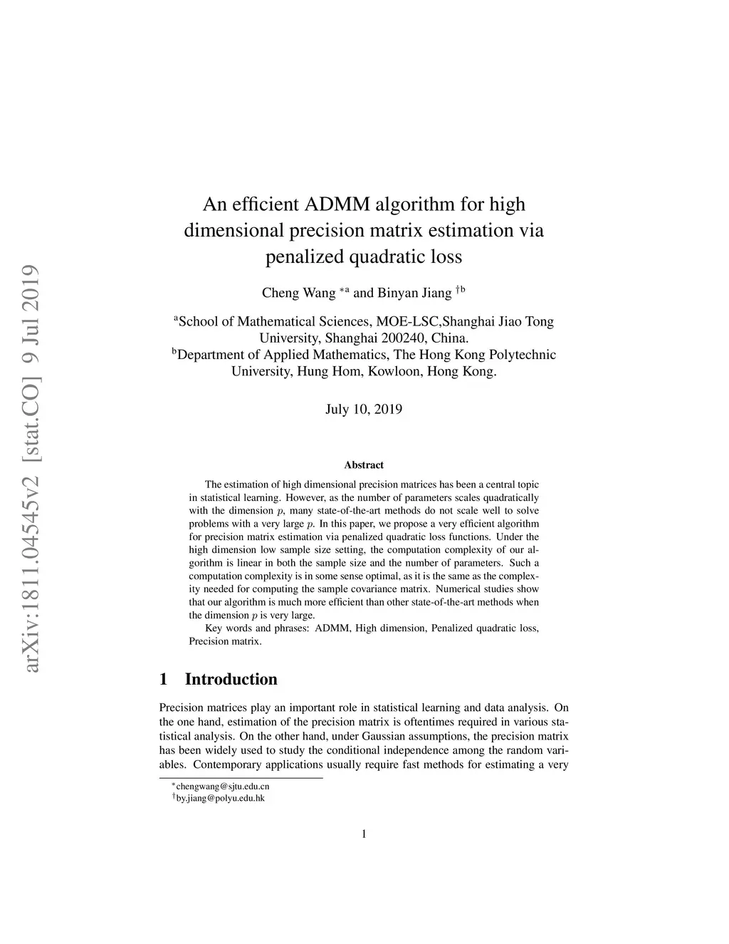 An efficient ADMM algorithm for high dimensional precision matrix