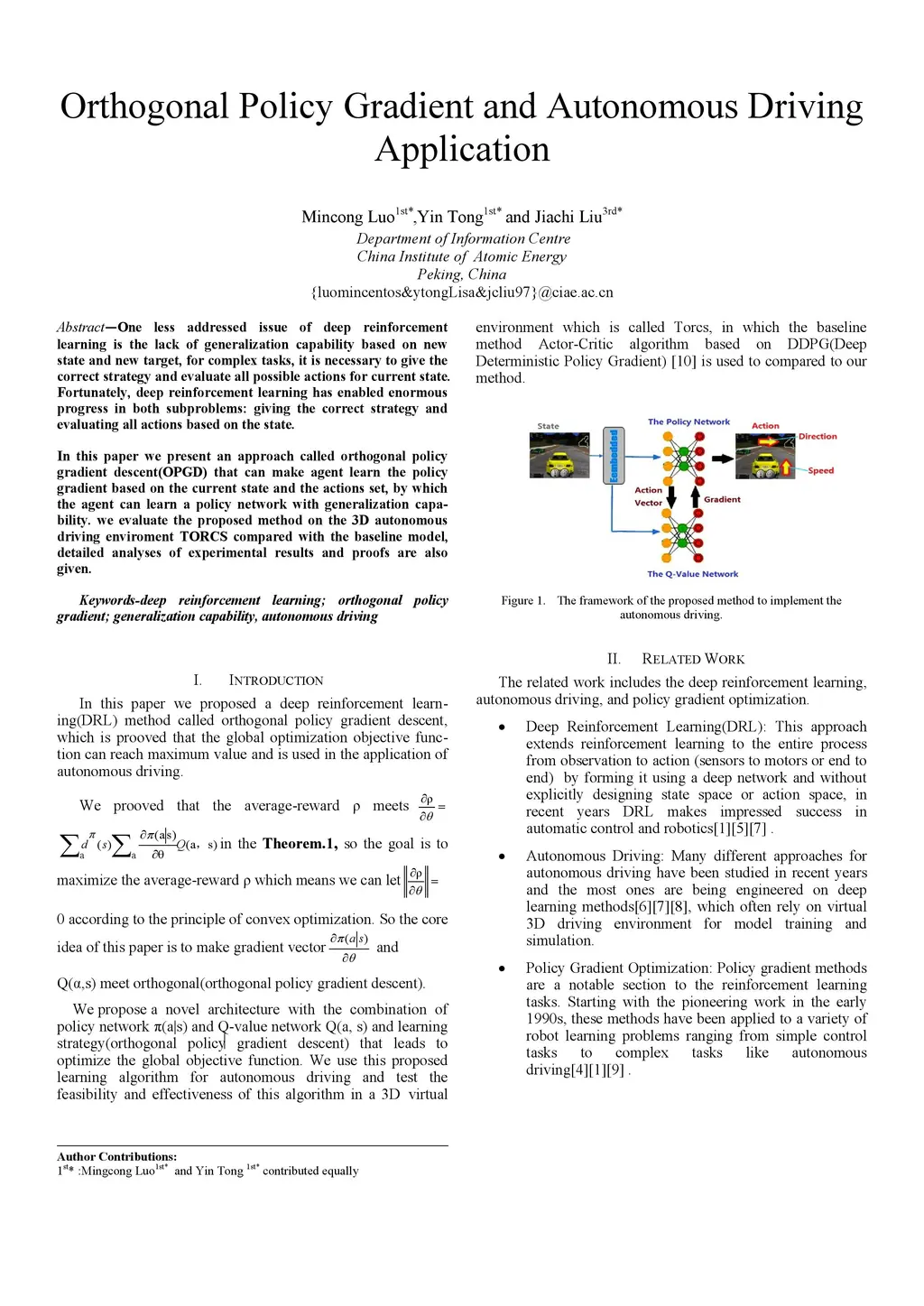 Orthogonal Policy Gradient and Autonomous Driving Application