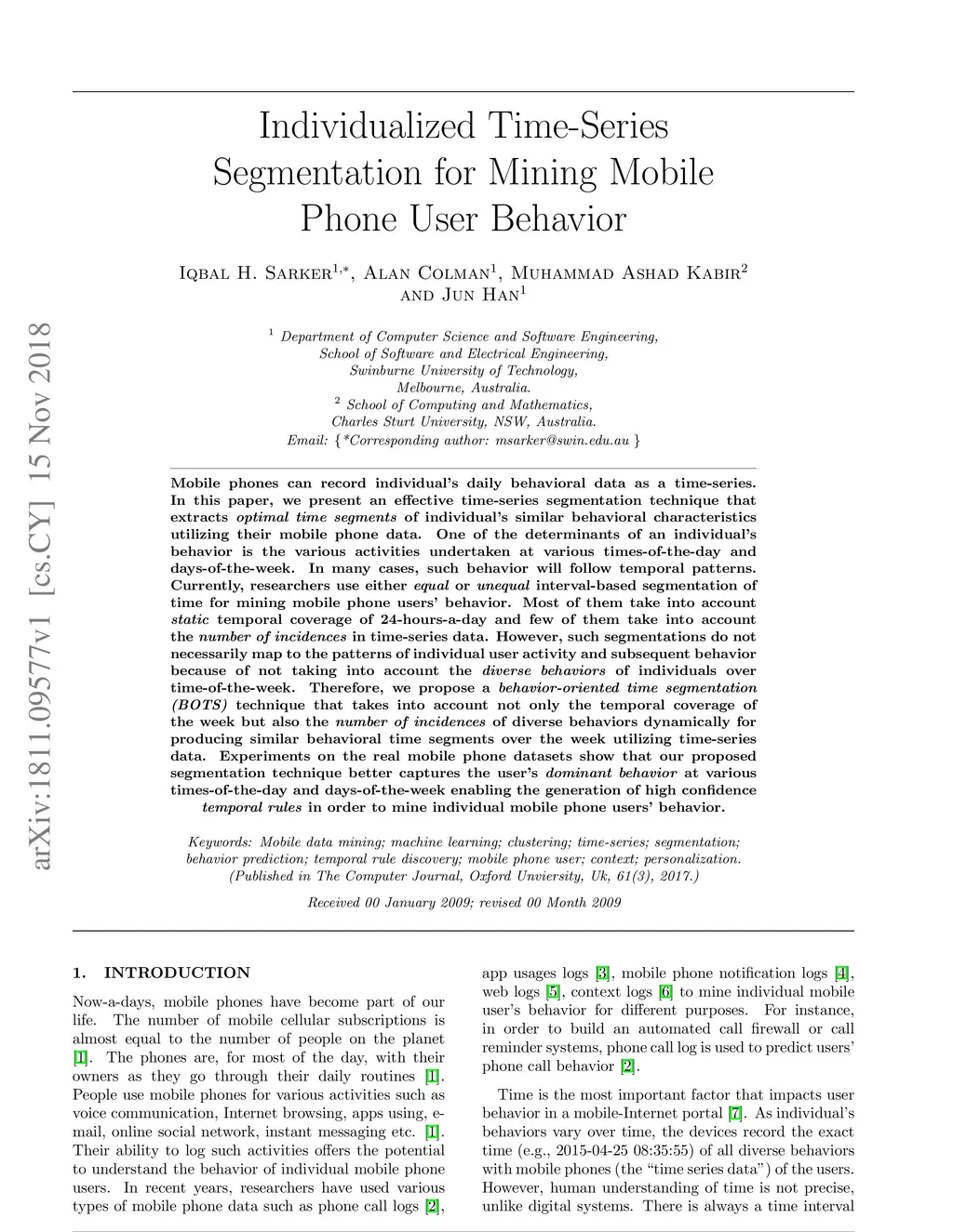 Individualized Time-Series Segmentation for Mining Mobile Phone User