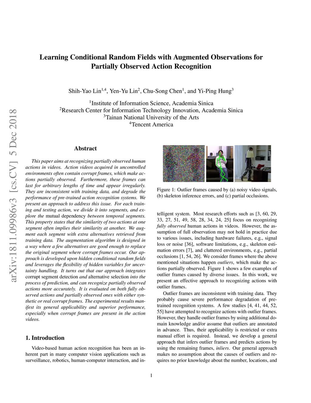This paper aims at recognizing partially observed human actions in videos. Action videos acquired in uncontrolled environments often contain corrupt frames, which make actions partially observed. Furthermore, these frames can last for arbitrary lengths of time and appear irregularly. They are inconsistent with training data and degrade the performance of pre-trained action recognition systems. We present an approach to address this issue. For each training and testing actions, we divide it into segments and explore the mutual dependency between temporal segments. This property states that the similarity of two actions at one segment often implies their similarity at another. We augment each segment with extra alternatives retrieved from training data. The augmentation algorithm is designed in a way where a few alternatives are good enough to replace the original segment where corrupt frames occur. Our approach is developed upon hidden conditional random fields and leverages the flexibility of hidden variables for uncertainty handling. It turns out that our approach integrates corrupt segment detection and alternative selection into the process of prediction, and can recognize partially observed actions more accurately. It is evaluated on both fully observed actions and partially observed ones with either synthetic or real corrupt frames. The experimental results manifest its general applicability and superior performance, especially when corrupt frames are present in the action videos.