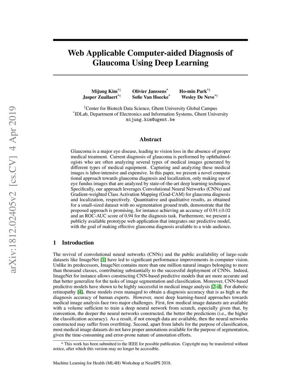 Web Applicable Computer-aided Diagnosis of Glaucoma Using Deep Learning