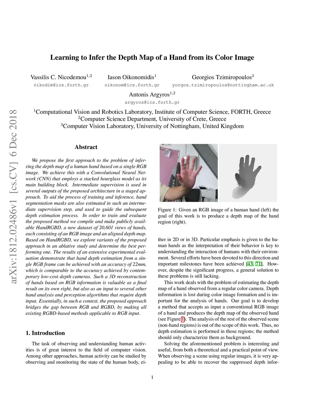 Learning to Infer the Depth Map of a Hand from its Color Image