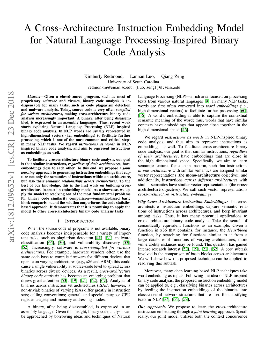 A Cross-Architecture Instruction Embedding Model for Natural Language