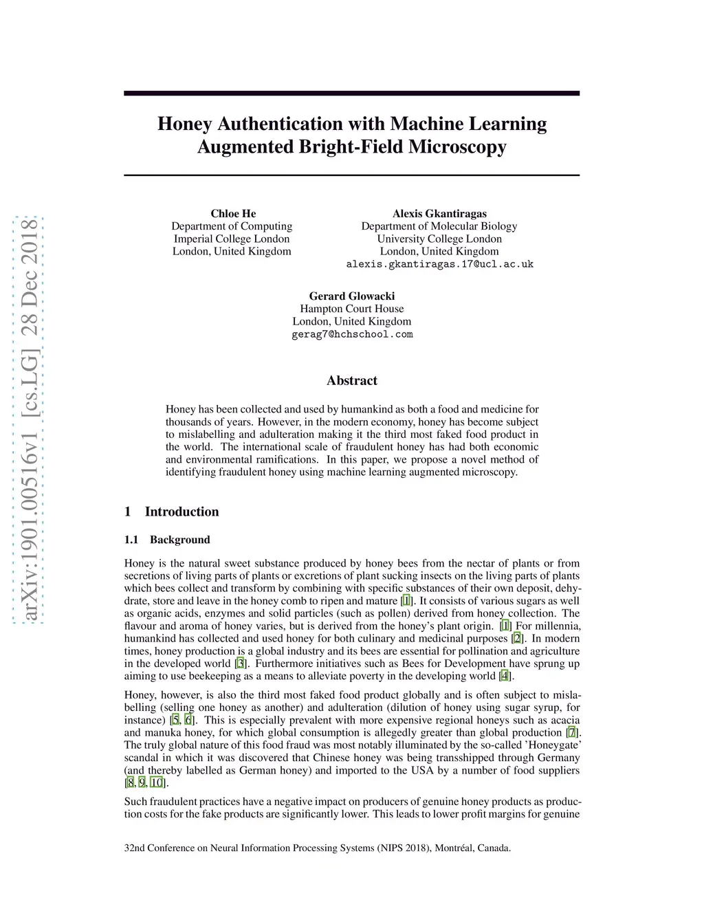Honey has been collected and used by humankind as both a food and medicine for thousands of years. However, in the modern economy, honey has become subject to mislabelling and adulteration making it the third most faked food product in the world. The international scale of fraudulent honey has had both economic and environmental ramifications. In this paper, we propose a novel method of identifying fraudulent honey using machine learning augmented microscopy.