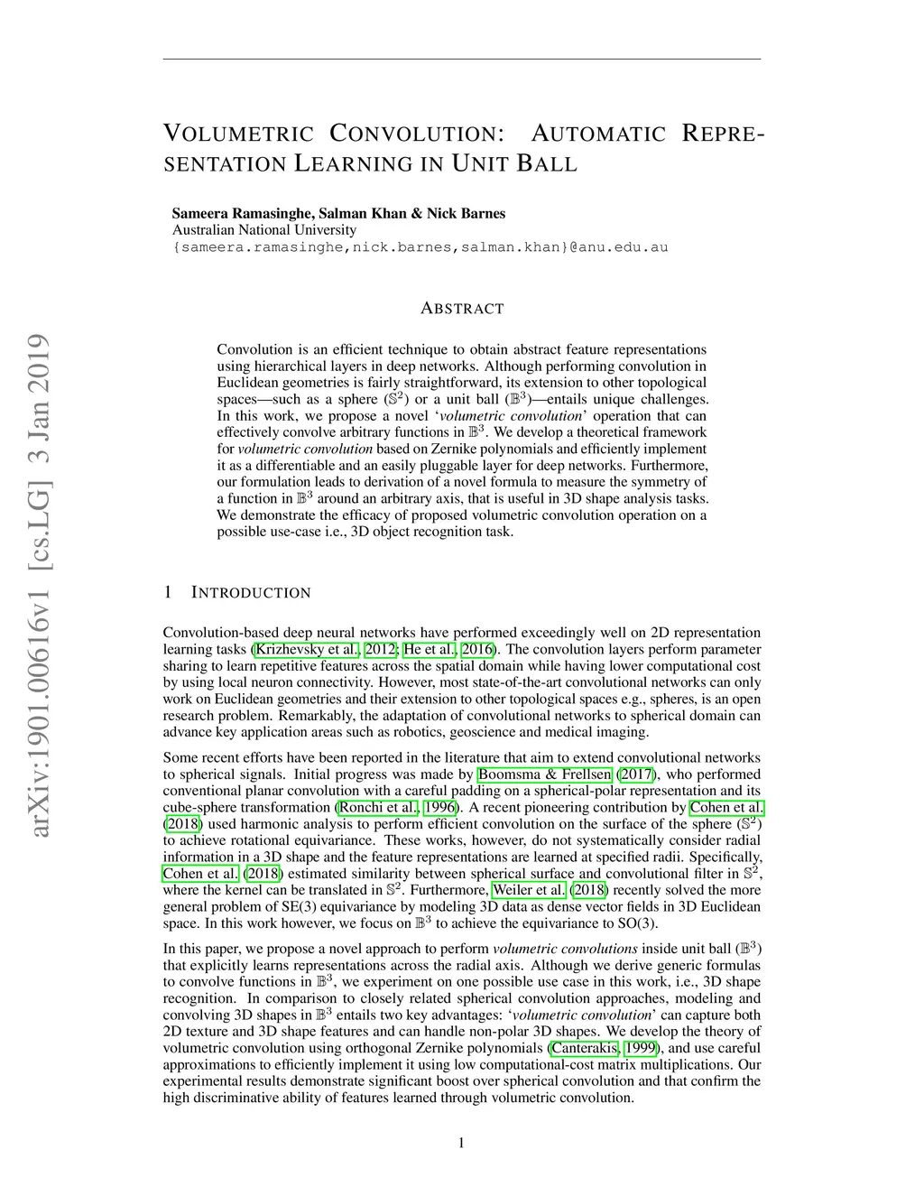 Volumetric Convolution: Automatic Representation Learning in Unit Ball