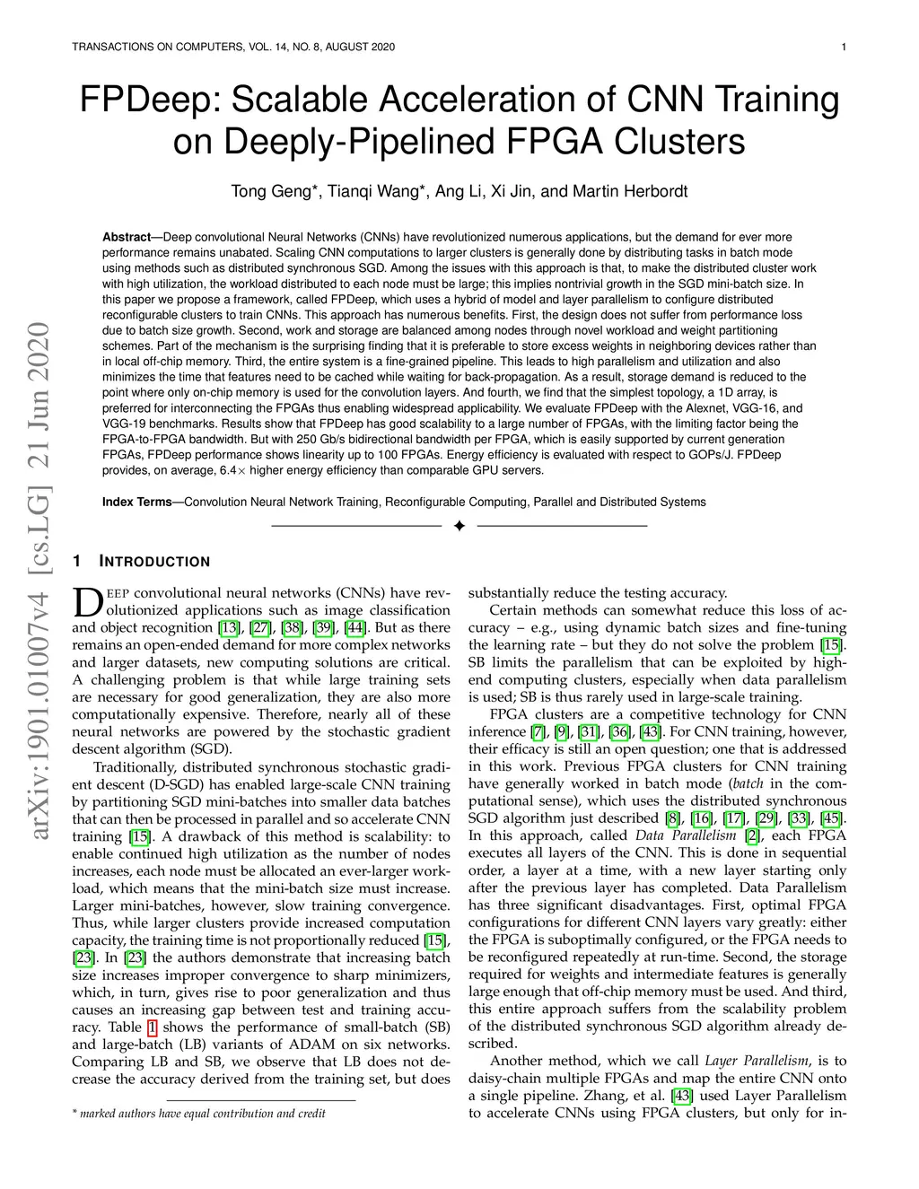 FPDeep: Scalable Acceleration of CNN Training on Deeply-Pipelined FPGA