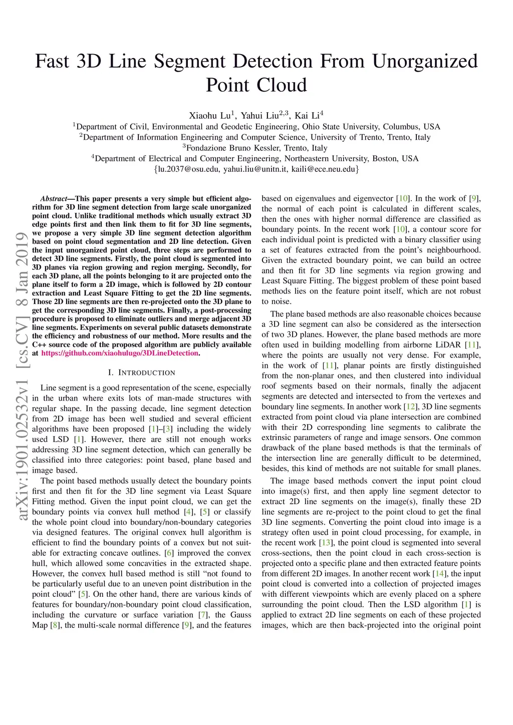 Fast 3D Line Segment Detection From Unorganized Point Cloud