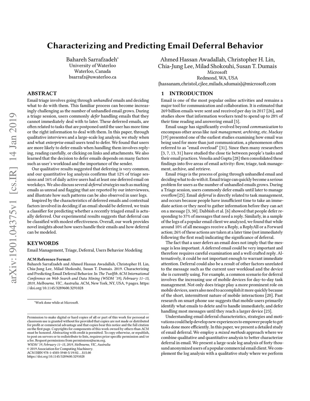 Characterizing and Predicting Email Deferral Behavior