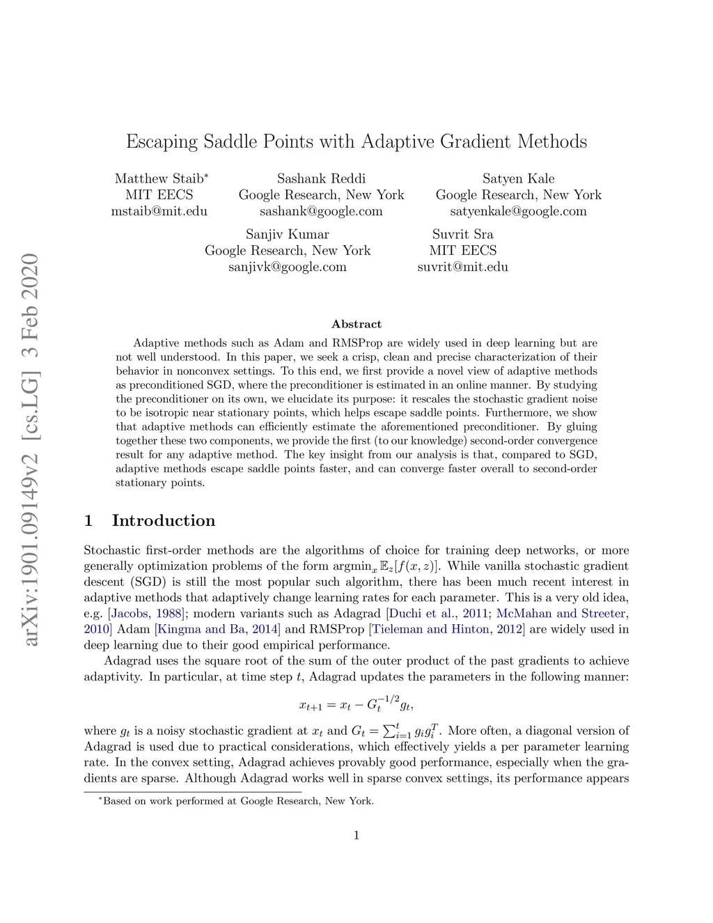 Escaping Saddle Points with Adaptive Gradient Methods