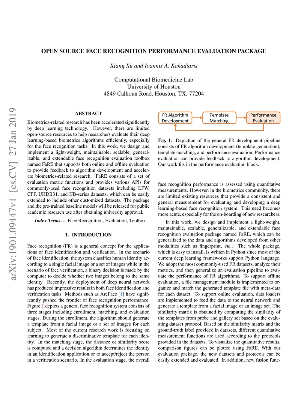 Biometrics-related research has been accelerated significantly by deep learning technology. However, there are limited open-source resources to help researchers evaluate their deep learning-based biometrics algorithms efficiently, especially for the face recognition tasks. In this work, we design and implement a light-weight, maintainable, scalable, generalizable, and extendable face recognition evaluation toolbox named FaRE that supports both online and offline evaluation to provide feedback to algorithm development and accelerate biometrics-related research. FaRE consists of a set of evaluation metric functions and provides various APIs for commonly-used face recognition datasets including LFW, CFP, UHDB31, and IJB-series datasets, which can be easily extended to include other customized datasets. The package and the pre-trained baseline models will be released for public academic research use after obtaining university approval.