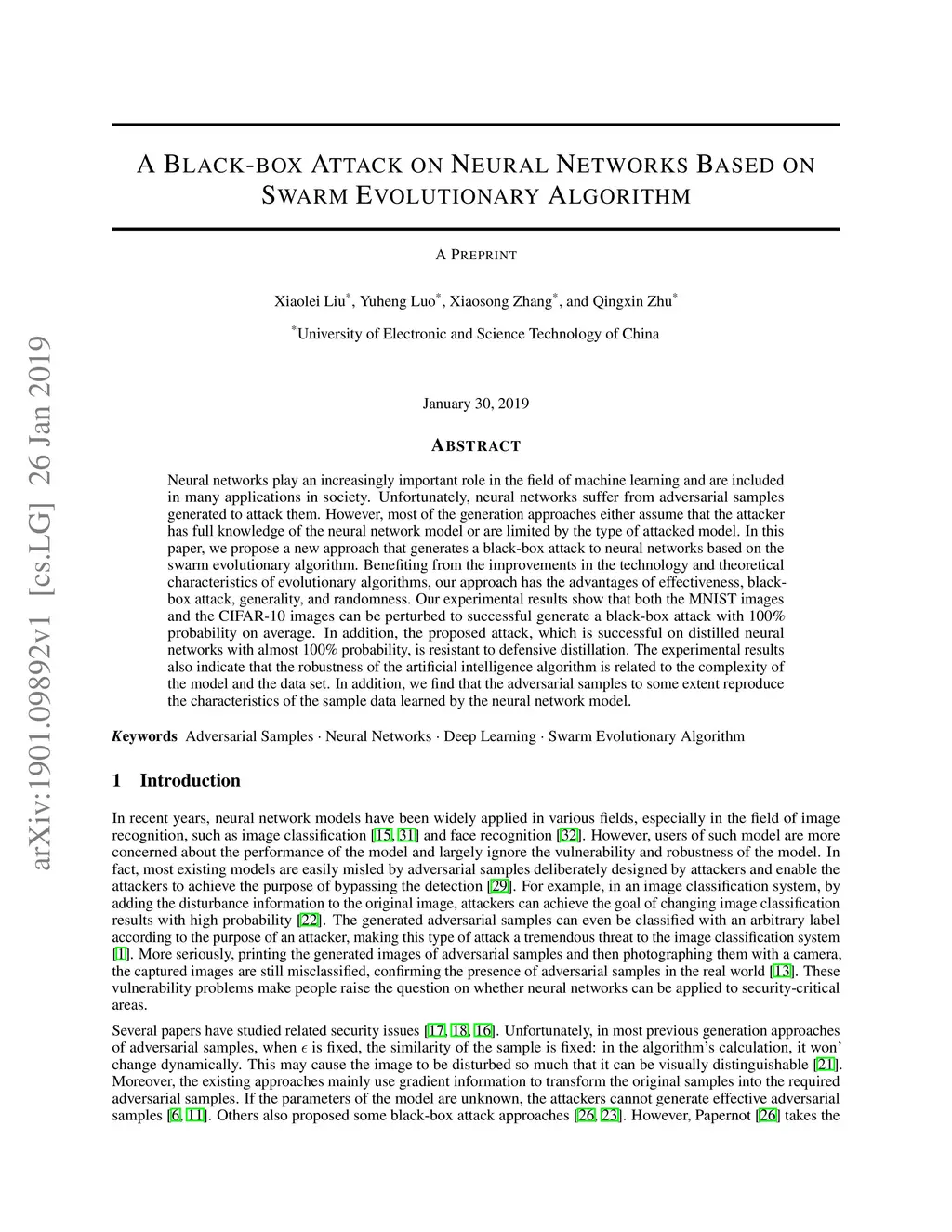 A Black-box Attack on Neural Networks Based on Swarm Evolutionary