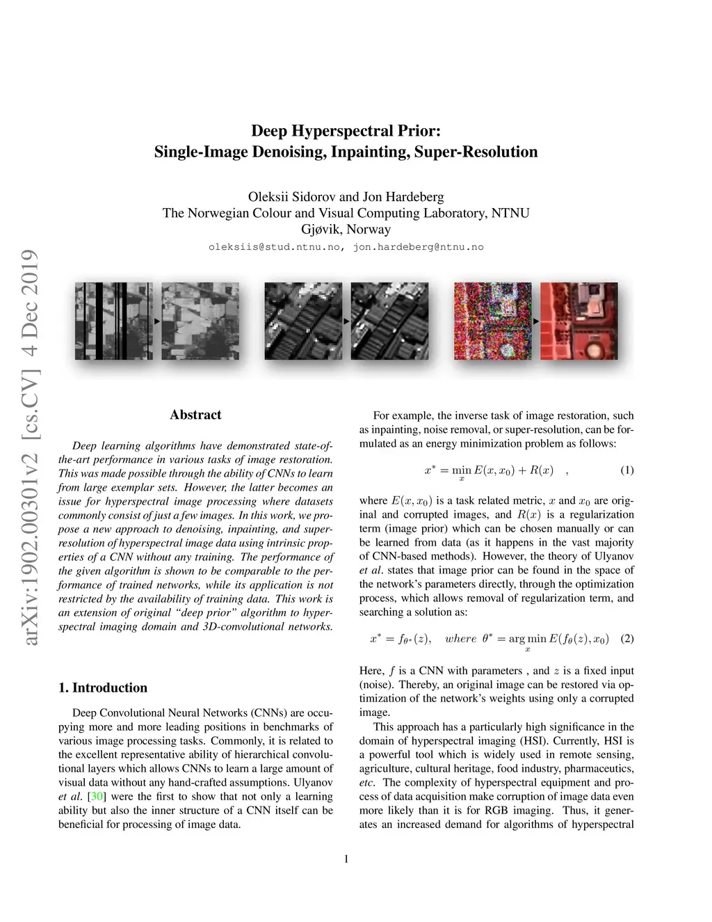 Deep Hyperspectral Prior: Denoising, Inpainting, Super-Resolution