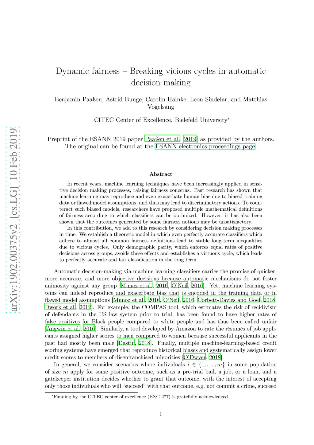 Dynamic fairness - Breaking vicious cycles in automatic decision making