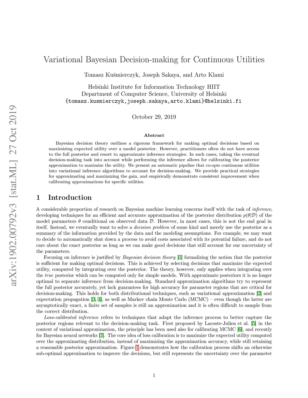 Bayesian decision theory outlines a rigorous framework for making optimal decisions based on maximizing expected utility over a model posterior. However, practitioners often do not have access to the full posterior and resort to approximate inference strategies. In such cases, taking the eventual decision-making task into account while performing the inference allows for calibrating the posterior approximation to maximize the utility. We present an automatic pipeline that co-opts continuous utilities into variational inference algorithms to account for decision-making. We provide practical strategies for approximating and maximizing the gain, and empirically demonstrate consistent improvement when calibrating approximations for specific utilities.