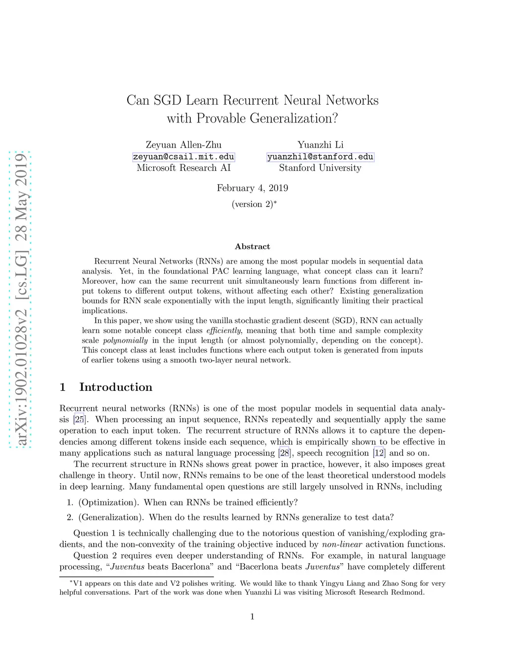 Can SGD Learn Recurrent Neural Networks with Provable Generalization?