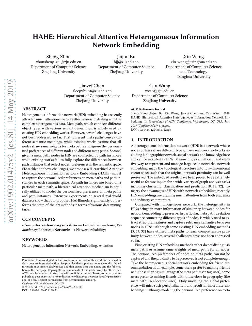 HAHE: Hierarchical Attentive Heterogeneous Information Network Embedding