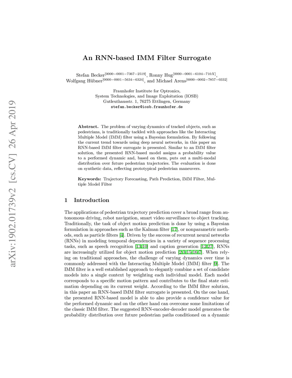 The problem of varying dynamics of tracked objects, such as pedestrians, is traditionally tackled with approaches like the Interacting Multiple Model (IMM) filter using a Bayesian formulation. By following the current trend towards using deep neural networks, in this paper an RNN-based IMM filter surrogate is presented. Similar to an IMM filter solution, the presented RNN-based model assigns a probability value to a performed dynamic and, based on them, puts out a multi-modal distribution over future pedestrian trajectories. The evaluation is done on synthetic data, reflecting prototypical pedestrian maneuvers.