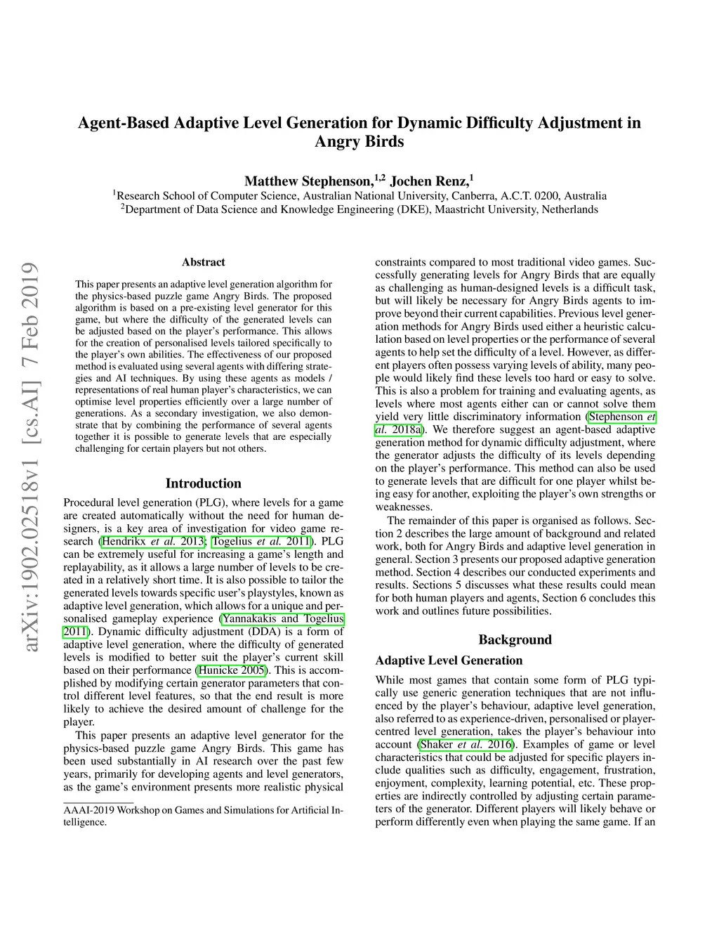 This paper presents an adaptive level generation algorithm for the physics-based puzzle game Angry Birds. The proposed algorithm is based on a pre-existing level generator for this game, but where the difficulty of the generated levels can be adjusted based on the player's performance. This allows for the creation of personalised levels tailored specifically to the player's own abilities. The effectiveness of our proposed method is evaluated using several agents with differing strategies and AI techniques. By using these agents as models / representations of real human player's characteristics, we can optimise level properties efficiently over a large number of generations. As a secondary investigation, we also demonstrate that by combining the performance of several agents together it is possible to generate levels that are especially challenging for certain players but not others.